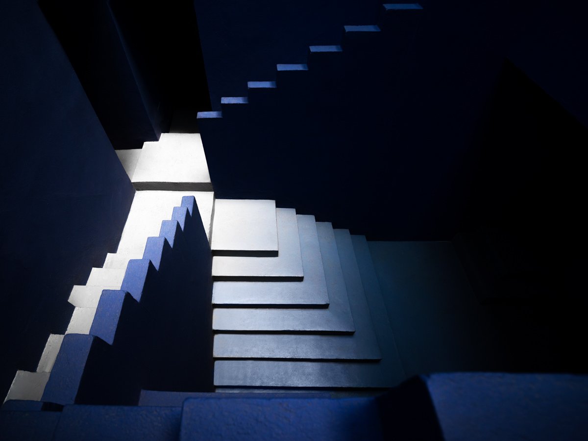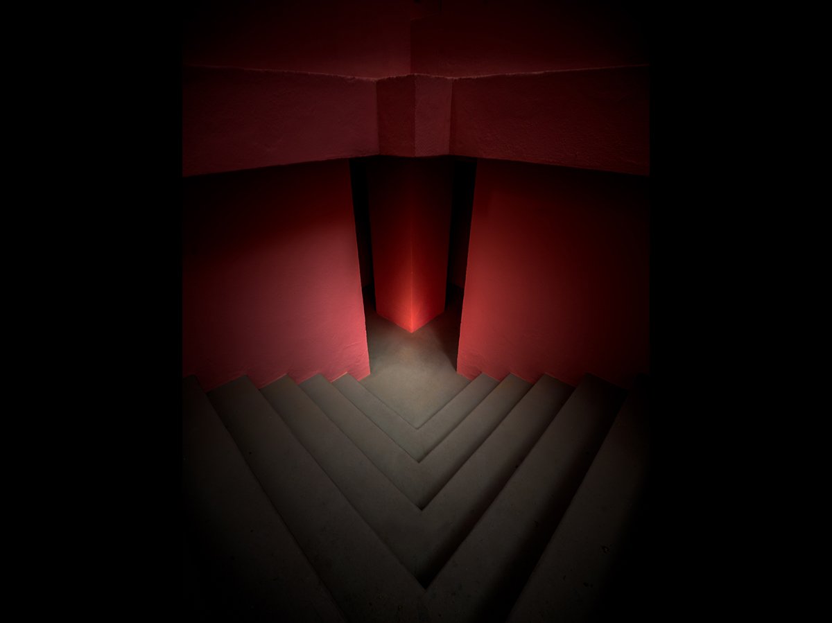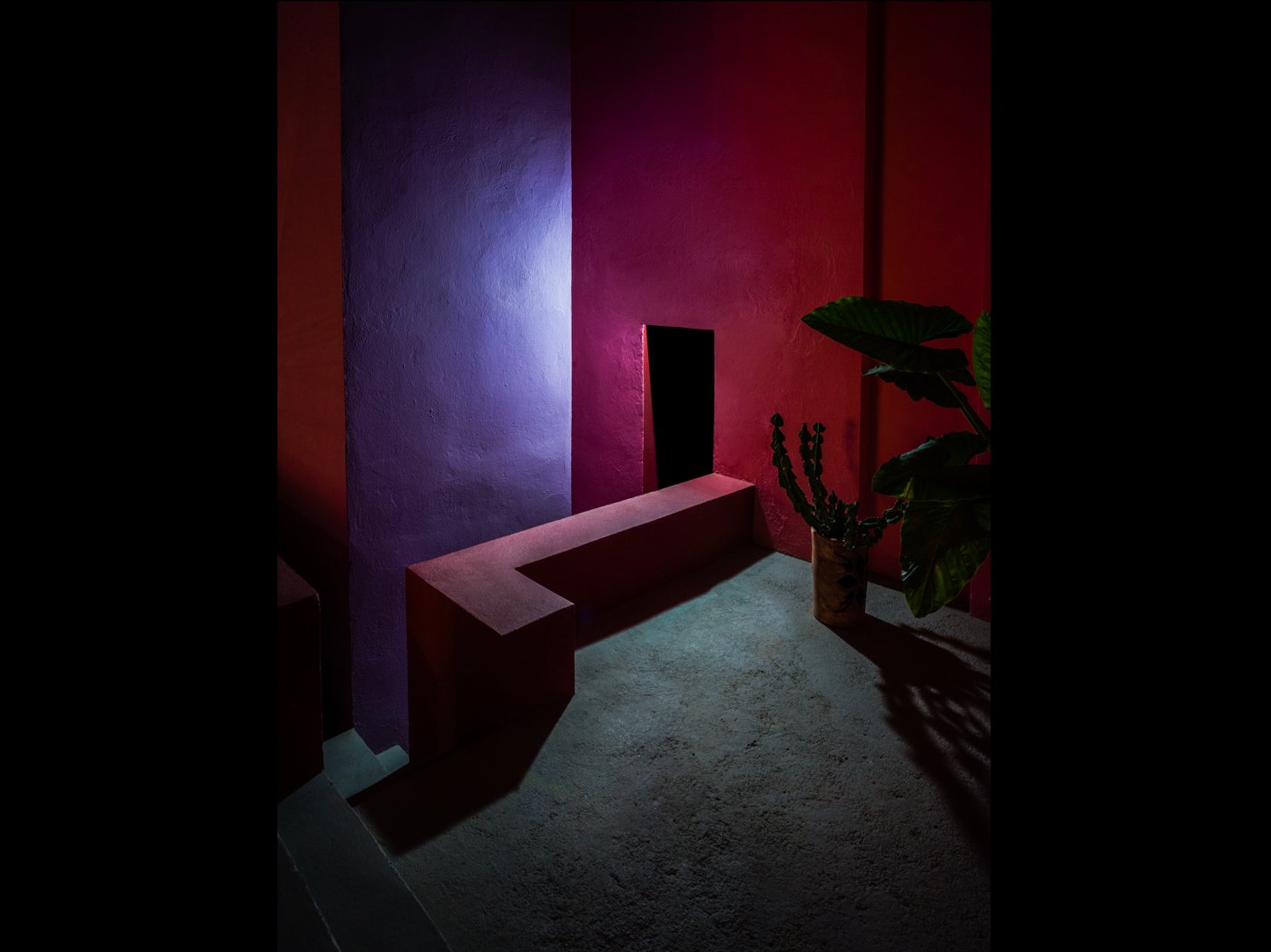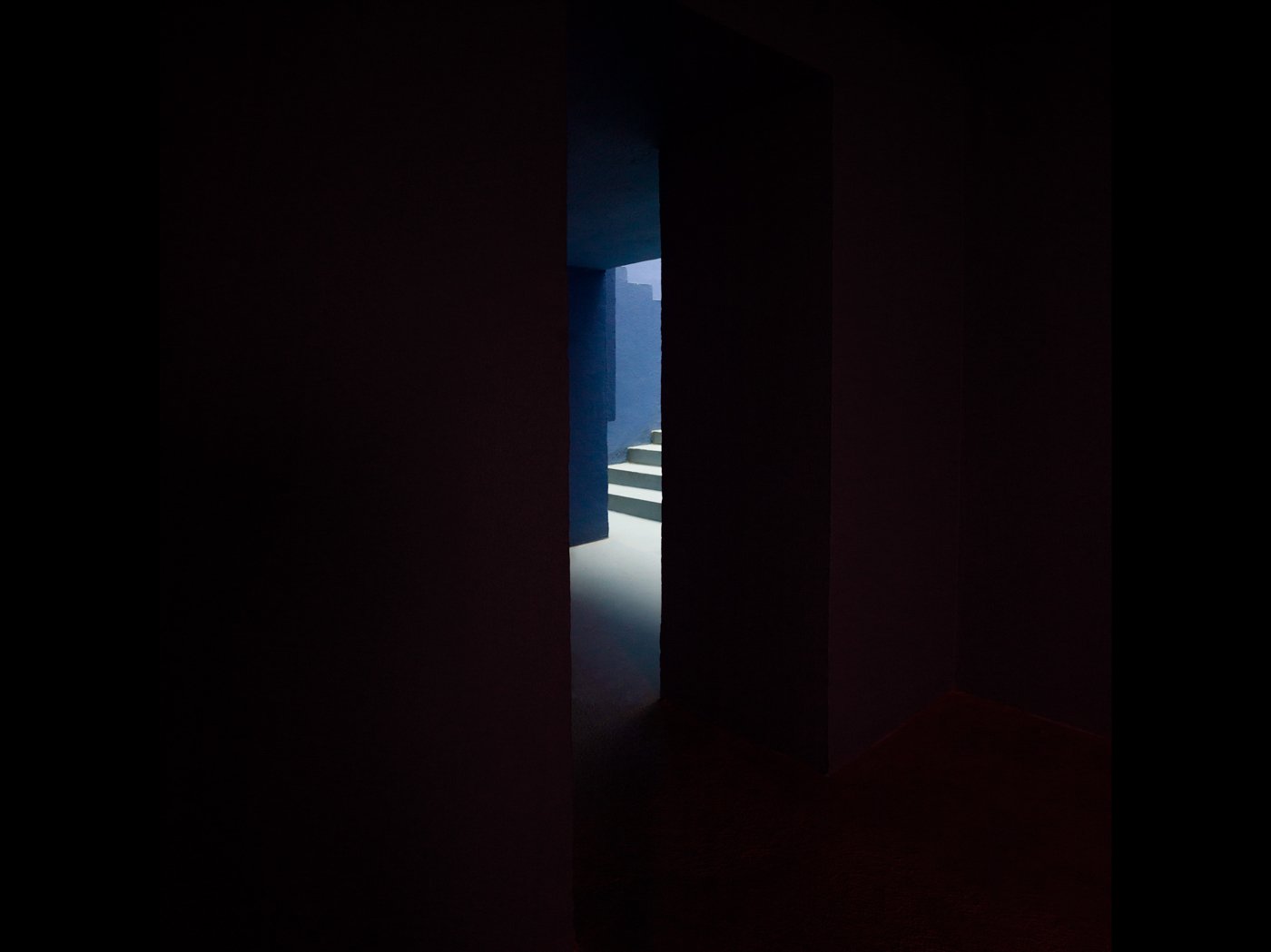 The labyrinth of Muralla Roja rendered at dusk and night.Colour, geometry and shadow merge into a dreamlike study of place.
